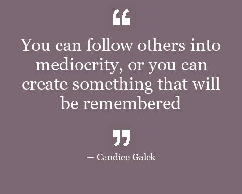 - You can follow others into mediocrity, or you can create something that will be remembered
