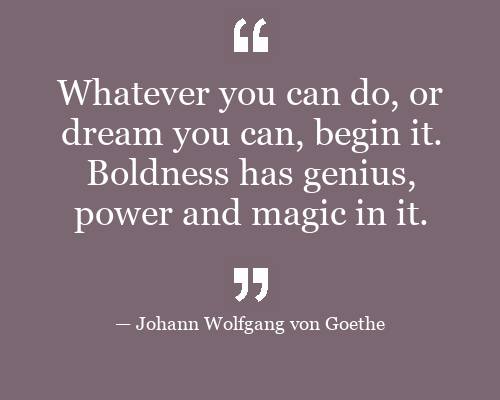 Whatever you can do, or dream you can, begin it. Boldness has genius, power and magic in it.